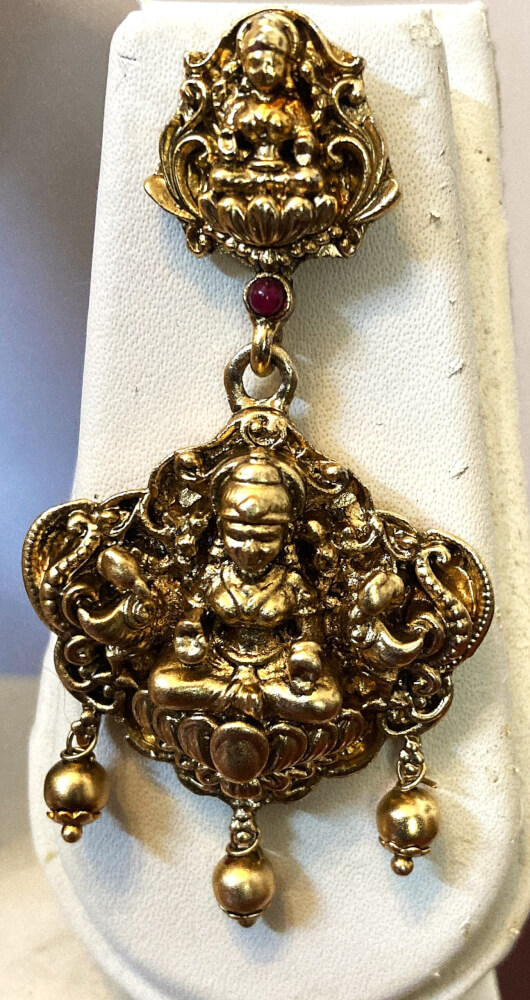 - Complements silk sarees, Kanjivarams, ethnic gowns, and temple attire