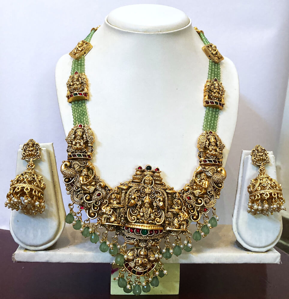 - Beautifully crafted Lakshmi temple jewelry design